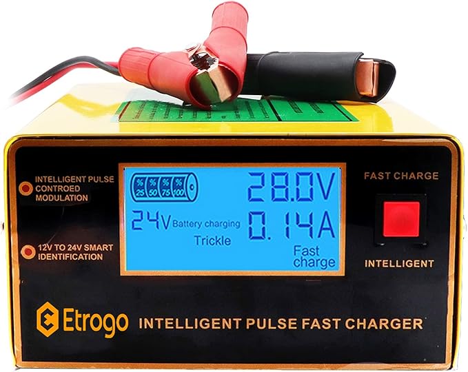(13) Etrogo Trickle Battery Charger 10A 12V/24V Auto Recognition Car Battery Fast Charger