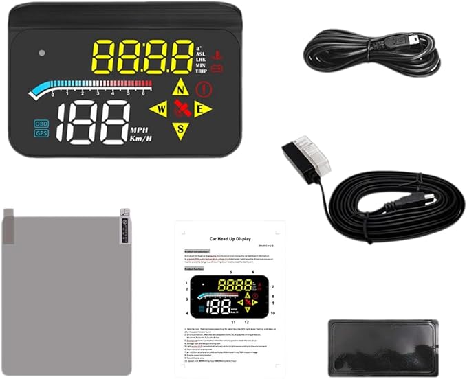 Light sensor: HUD can automatically adjust the brightness according to the environment?Speed icon: OBD mode: speed, car ECU data. GPS mode: satellite data , compass?System icon: short press the ?+? key within 5 seconds to choose OBD or GPS system.